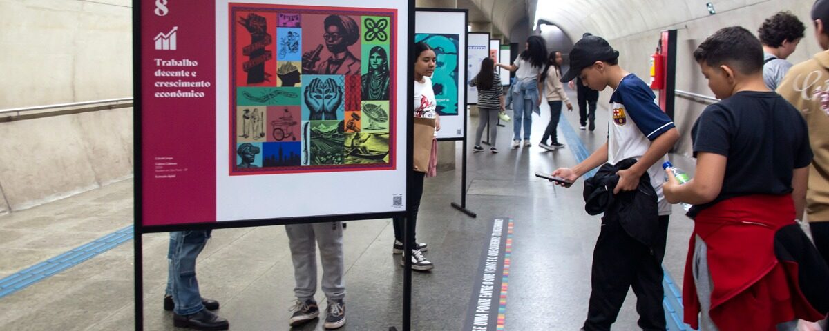 Mostra apresenta obras de 17 artistas brasileiros que abordam os 17 Objetivos de Desenvolvimento Sustentável (ODS) da Organização das Nações Unidas (ONU), dos quais o Brasil é signatário. Aconteceu em 03 estações do Metrô de São Paulo – República, Clínicas e Ana Rosa, entre julho e setembro de 2025.
